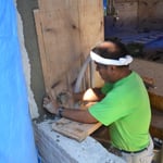 今日は隣の丁目の高梨左官の職人さんにコンクリートの開口部などの補修をしていただきました。外に散乱する28年前の外断熱材。黄色く残っているのが接着剤です。こんな少量の接着で固定出来る訳がありません・・。既存の断熱材の上から新しい断熱材を貼る予定でしたが、躯体との間に隙間が出来て雨も入りこんでいたので、断念しました。今と違って外断熱工法も何も確立されていなかった28年前にこれに挑んだ設計者はスゴイ!