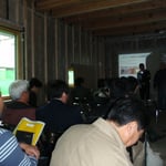 キーアーキテクツ森によるセミナーは、軽井沢パッシブハウスの設計が、その土地柄を考慮してなされたことをグラフ等を用いて、分かりやすく講義されました。最後にお施主様の『パッシブハウスは(工法とかではなく)フィロソフィー(家つくりの考え方)だと分かりました』との言葉は印象的で、そこにいた一同の共通認識がもってた気が?します。今後の進行も楽しみです。