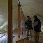 新幹線で東京から1時間ちょっとの軽井沢ですが、年間を通した気温変化は東京より北海道に近い場所です。セミナーが行われた14日は、雨が降り少し肌寒い日ではありましたが、たくさんのご来場者で会場はにぎわっており、建築中とは言え、断熱と気密がしっかりされた現場は、外の寒さとは違って、皆さんゆっくりとご見学いただいてました。