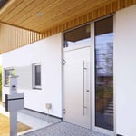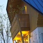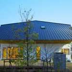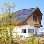 瓦棒・木の斜め軒・漆喰(白)壁のコラボ。気持ちいいです!