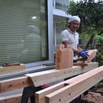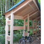 GW中は京都府の美山町から大工さんが鎌倉にやってきて、杉を使った伝統工法で薪置き場を作ってくれました。一応事前に設計図は渡しましたが、大工さんの都合で結構途中でいろいろ変わりました・・。臨機応変なのはプロの証拠?事前にある程度刻んではありましたが、3食昼寝付の現場で、8人工でした。さすがに早いですね。来週は鎌倉で創業80年の浅田板金さんが屋根を葺いてくれる予定。