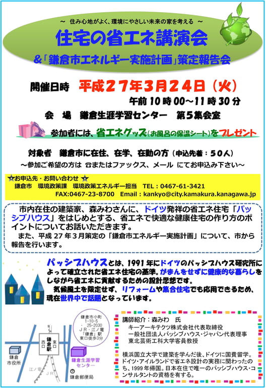 お申し込みは:鎌倉市環境政策課 環境政策エネルギー担当まで: