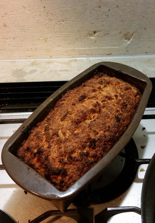 昨年からパナソニックの低速ジューサーで有機ニンジンや無農薬リンゴをすり潰してジュースを飲むようになりました。その結果、皮も入った搾りカスが大量に出るようになり、せっせと料理に活用するようになりました。粉の分量の5倍まではおろし野菜やらナッツやらバナナピューレを入れられると昔母が言っていたような記憶がありまして、この副産物どっさりケーキが我が家のおやつとして登場。粉は国産全粒粉、香りづけには小笠原産のラム酒を使用しています。