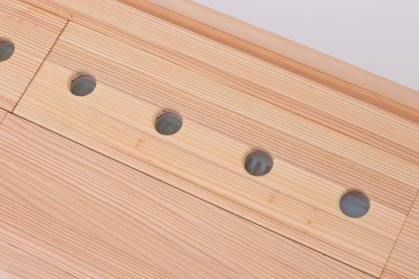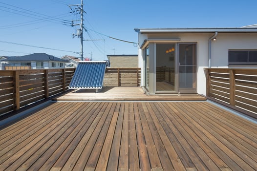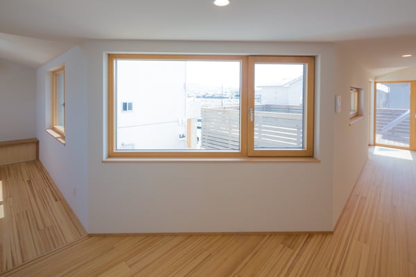 カーポートの上はダイニングに続くウッドデッキ。こちらに真空管型太陽熱温水器(寺田鉄工所製)が設置されました。このパネルとセットになっている給湯タンクに、ペレットストーブからの温水回路を接続しました。夏に長期家を空けられる際、タンクのお湯が沸騰してしまうと水道水を少し無駄に消費してしまうので、覆いをかけられるよう、あえて屋根にパネルを設置しませんでした。これなら雪も簡単に落とせますね。更に冬場に集熱パネルの効率が落ちたとしても、ペレットストーブから送られる温水の熱ははまず最初に給湯タンクに放熱され、その戻り回路が1Fの床下放熱器に回るという仕組みになっているため、冬場に湯切れが起きることはまず無いでしょう。ここから先はある程度住まい手さんにチューニングを委ねていきたいと思いますが、無事にシステムが組み上がり、ひとまず安堵しております。