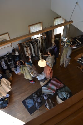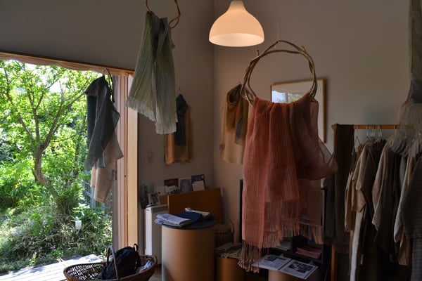 知り合いの庭師さんのご紹介で、葉山のPONNALETさんの展示会にお邪魔しました。なんと、建物は中村好文さんによるもの。オーナーさんはラオスやカンボジアで織られた草木染の布を使った帯や和装小物、ストールなどを手掛けられる江波戸さん(写真左上)。この場所で定期的に着付け教室も行っているそうです!こんな素敵な場所で、素敵な布たちに囲まれて、着物を着られるなんて、本当に贅沢ですね。