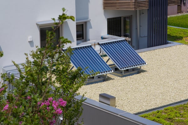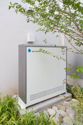 ところでエネルギーを蓄えるというと、皆さん直ぐに蓄電池(ケミカルバッテリー)を思い浮かべませんか? でもお湯を貯める貯湯タンクも英語ではサーマルバッテリーと呼ばれ、重要視されています。どちらのバッテリーが製造時のエネルギー消費が少なく、長持ちするかは、何となくお分かりいただけると思いますが、こちらのコミュニティセンターではサーマルバッテリーも300L装備、太陽熱集熱パネルからの熱も受け取る回路となっています。