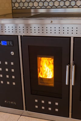 このイタリア製ペレット調理器は北陸の60Hzに対応できる状態にしてもらってから出荷され、パッシブタウンのコミュニティセンターは今年6月に竣工しました。今年初めての暖房シーズンを迎えましたが、温水回路も順調に動いており、床暖房と給湯タンクにペレットストーブの熱を分配してくれています。何しろオーブン庫内の温度がマニュアル通りに上がってくれ、無事にクッキーが焼きあがった事は、まだ国内での導入実績が少ないこの設備の採用を後押しして下さったお施主さんへの良い知らせです。