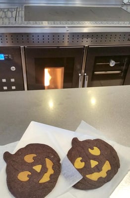 今日は午前中にパッシブタウン3期の視察申し込みがありまして、朝から黒部に参りました。午後はコミュニティセンター内のペレット調理器の試運転序に、ハロウィンのクッキーを焼いてみました。
