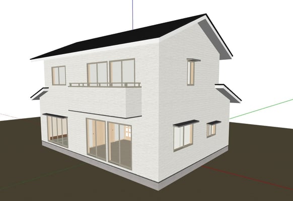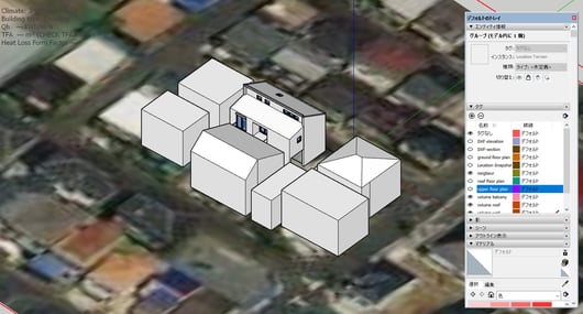 DesignPHはスケッチアップの拡張ツールなので、ジオロケーション機能を使うと、物件の周辺の航空写真を下絵として読み込むことが出来ます。とはいえ、住宅街ですとそれほど遠くまでモデリングしなくても大丈夫です。