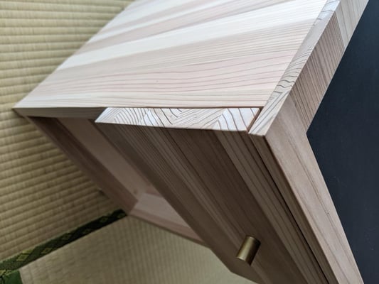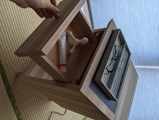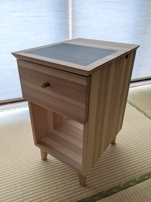 鹿児島のドリーミー大和さんによる、燻煙乾燥の杉柾材をキーアーキテクツの設計では長年使用させて頂いてますが、置き家具もこの材料で作りたい!という長年の夢をかなえるべく、この度ナイトテーブルをデザインいたしました!基本的には私の夢を全て実現したようなプロダクトとなりましたので、その全容を皆様にこっそりご紹介させて頂きます。