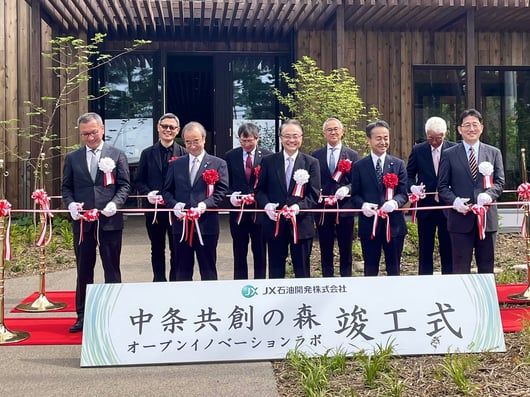 式典には新潟県知事や中条市長も参加され、多くのメディアや研究機関の方が参列されていました。元々石油を掘ることに特化した企業が、省エネやクリーンエネルギーを模索する2軸経営を宣言したことは、地元では大きな注目を集めている様子が伺えました。